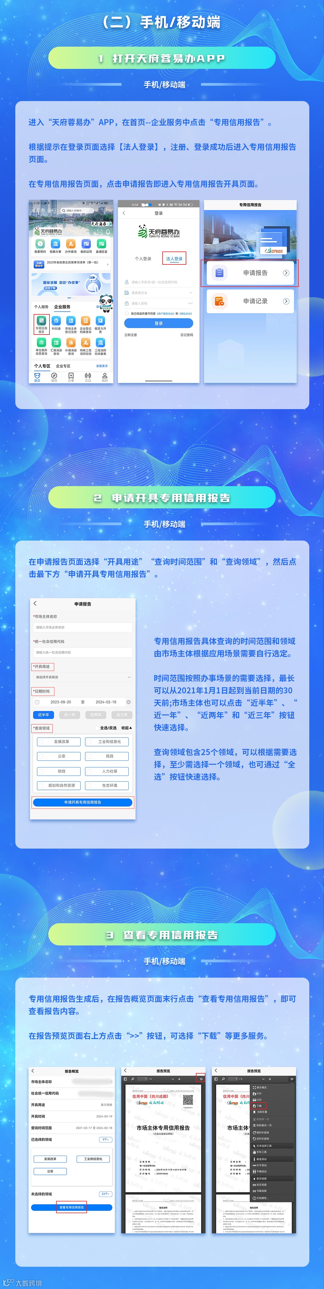 据了解,在成都市各级社会组织登记管理机关依法登记的社会组织(社会团体和民办非企业单位),可通过“信用中国(四川成都)”网站、“天府蓉易办”平台、全市各级政务服务中心以线上或线下方式开具专用信用报告,用以证明自身在全市行政区域内相关领域无违法违规信息的情况。
