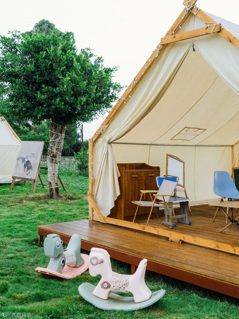 在松软的草地上安营扎寨