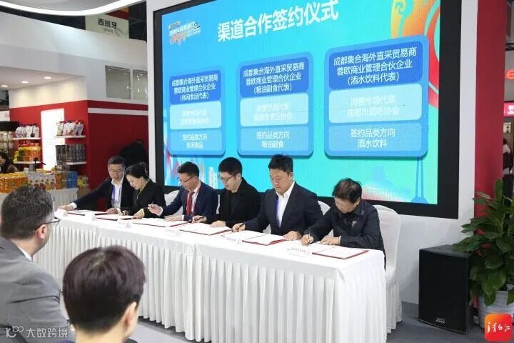 当天活动上,在休闲食品、粮油副食、酒水饮料等方面,成都亚蓉欧商业管理合伙企业(有限合伙)与Hamlet、Dr+LEE EASYSTART、荷兰DMQ BV、COMTEMP、Esporão、CASAL GARCIA等境外品牌,就巧克力、糖果、成人奶粉、肉类、果醋、葡萄酒、清酒进行了品牌合作签约;与此同时,成都亚蓉欧商业管理合伙企业(有限合伙)还分别与成都零售商协会、成都市烹饪协会、成都市酒吧协会,就休闲食品、粮油副食、酒水饮料达成渠道合作共识,并进行了签约。