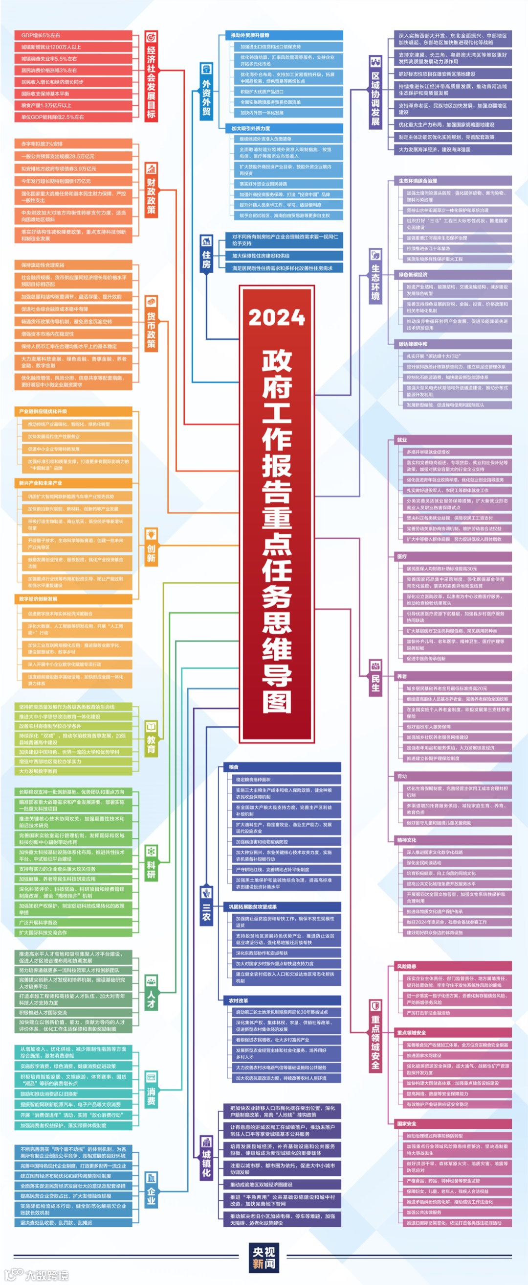 ,提出了2024年发展主要预期目标和政府工作任务,涉及科技创新、教育、人才培养、消费、住房等多个方面。通过一张思维导图,一起来全面了解↓↓↓