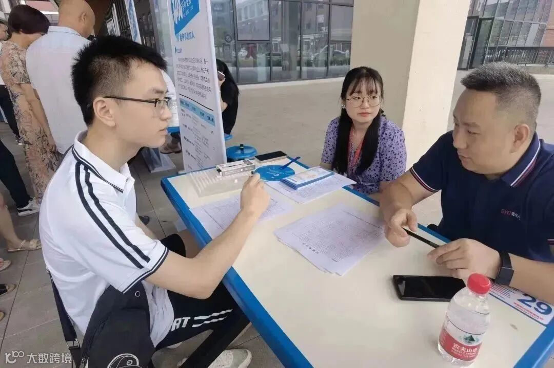 “岗位有什要求?”“待遇怎么样?”“工作时长多久?”……现场,不少招聘展位前排起了长队,多名求职者在展位前询问岗位信息。了解企业用工要求后,求职者投递简历,或当场填写姓名、联系方式等信息。随后,企业对求职者进行现场初步面试,通过后,双方达成意向性用工。