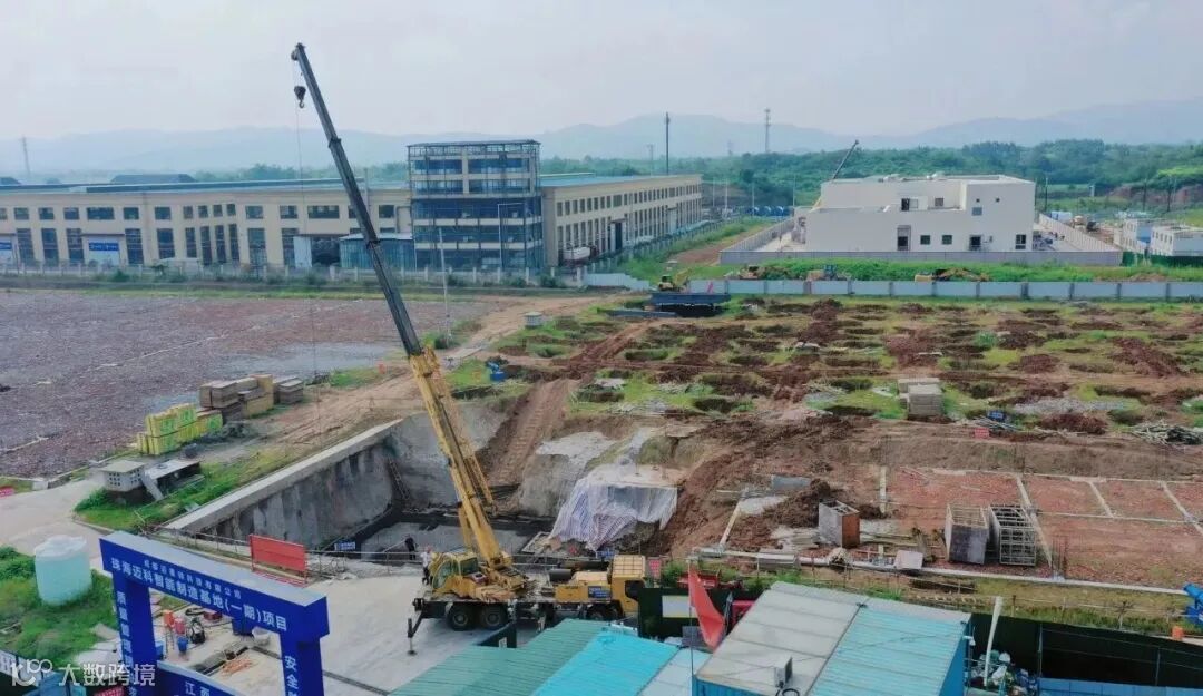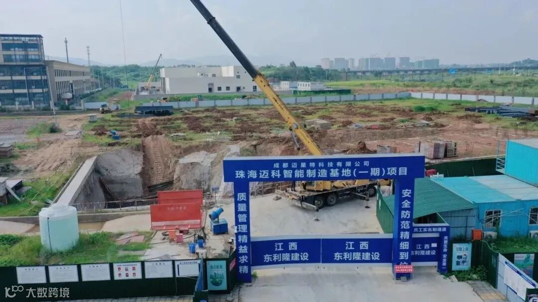 在珠海迈科智能制造基地项目(简称珠海迈科项目)建设现场,一辆塔吊车正在作业,目前,该项目正在进行一号车间基础施工工作,为主体钢构施工打下基础。