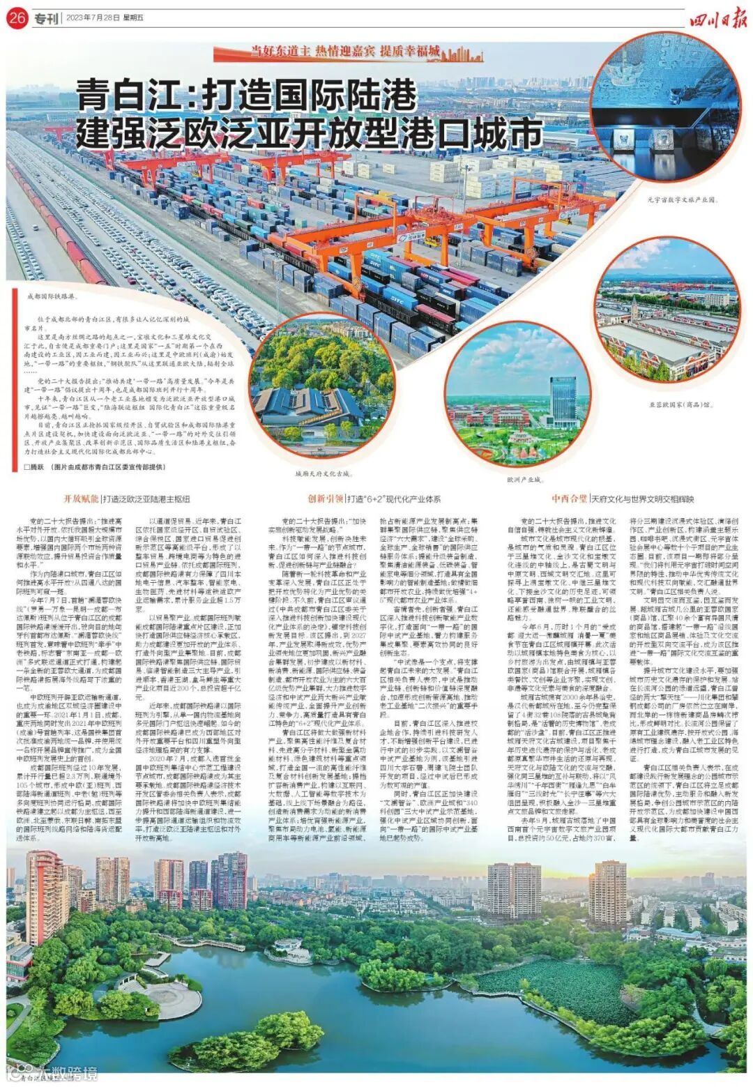 近日《四川日报》以《青白江:打造国际陆港 建强泛欧泛亚开放型港口城市》为题 ,广泛聚焦青白江区紧紧围绕“一带一路”倡议、成渝地区双城经济圈建设及省市战略部署,积极打造社会主义现代化国际化北部中心的发展之路。