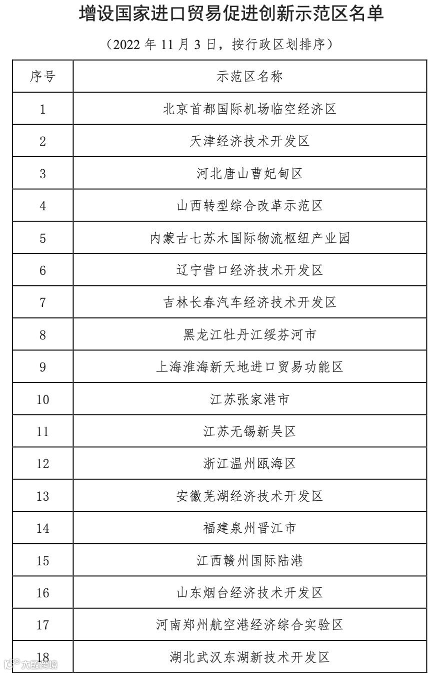 小布从商务部网站了解到,商务部、发展改革委、财政部、人民银行、海关总署、市场监管总局、外汇局、药监局决定,在全国增设29个国家进口贸易促进创新示范区,并公布了名单。其中,
