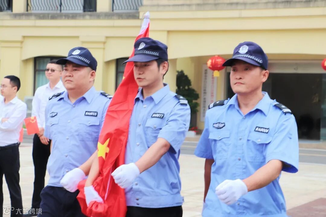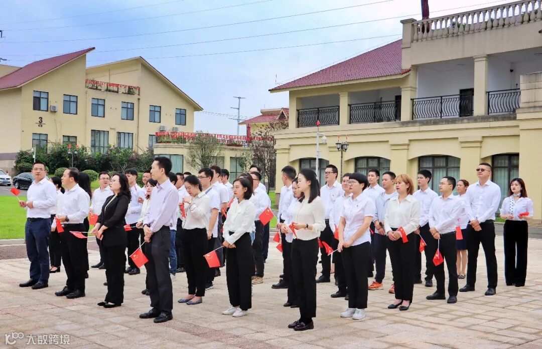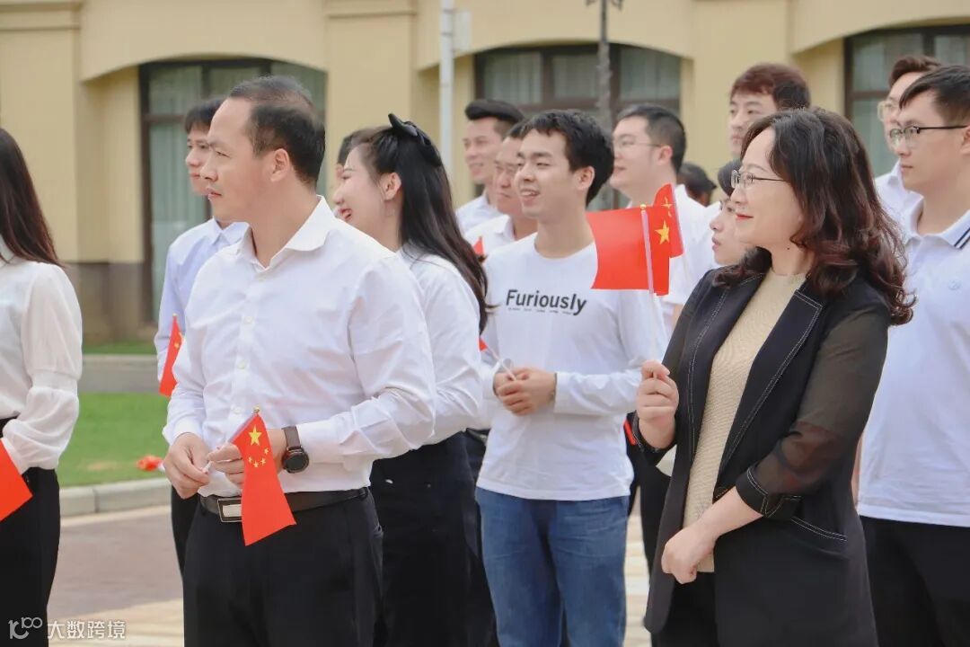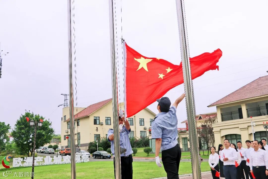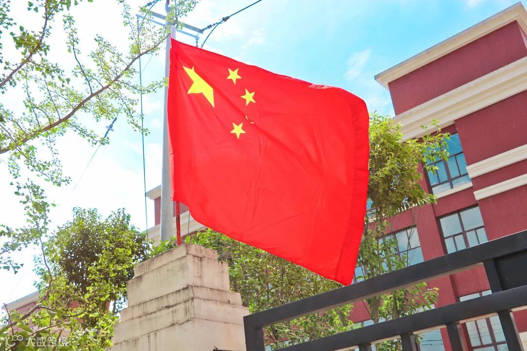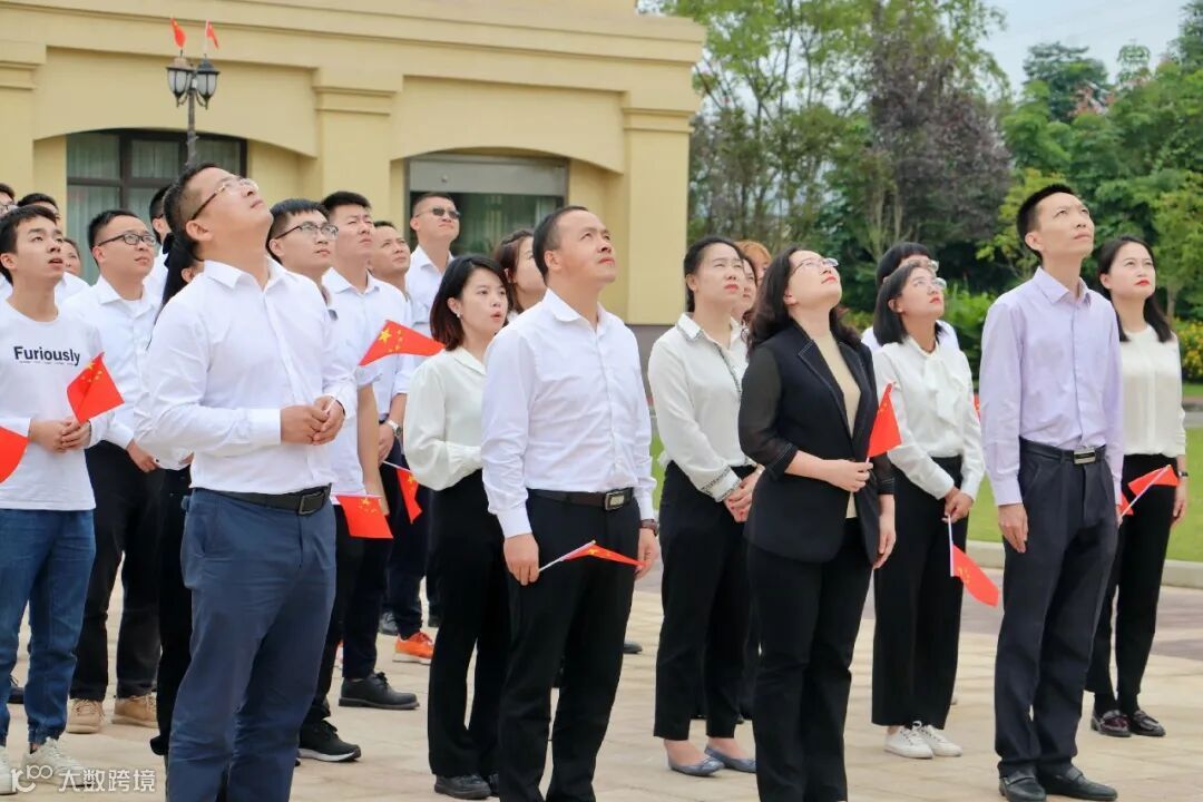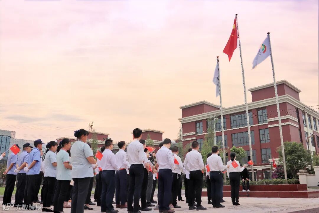 伴随着雄壮的《义勇军进行曲》,五星红旗冉冉升起,在场人员庄严肃立,面向国旗行注目礼,齐声高唱国歌,为伟大祖国送上深情祝福。