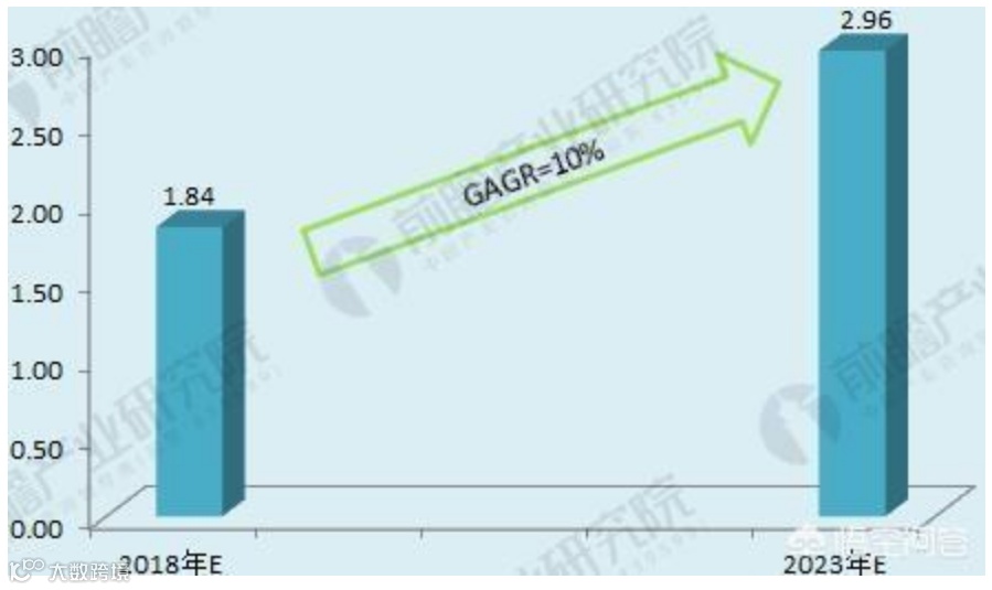 2018-2023年我国物流及供应链服务市场规模(单位:亿美元)