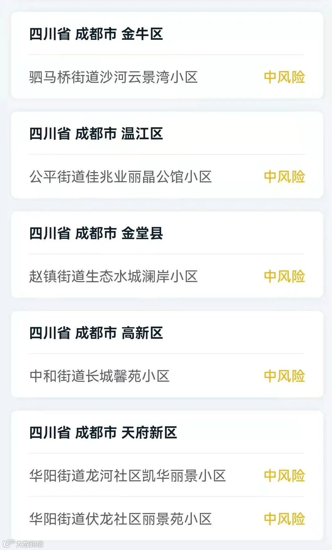 2月16日:天府四街建信人寿大楼、天府四街晟丰餐饮、天府新区凯华丽景小区(含小区内菜鸟驿站)、高新区棕榈泉国际中心(天府大道中段199号)、天府新区华阳街道丽景路伊伊超市