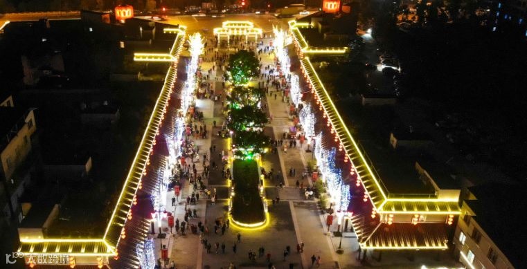 弥牟镇八阵巷美食街的闪亮灯火