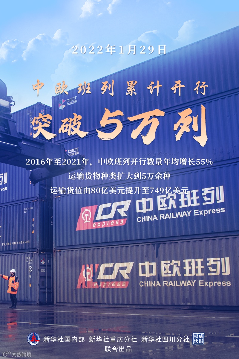 2022年1月29日晨,随着中欧班列X8086/5次从成都城厢站开出,中欧班列累计开行突破5万列。