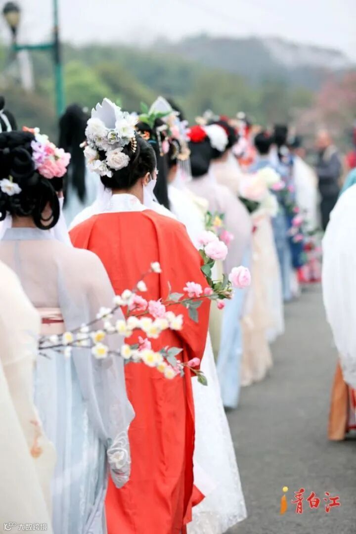 3月14日,青白江区首届花朝节在凤凰湖生态湿地公园举行。本次旨在宣传和展示中华民族传统服饰,弘扬民族传统文化,增进汉服同袍之间的感情,让传统回归生活,让更多的人了解花朝节及习俗。来自成都、德阳等地区的600多名汉服爱好者参与活动,让整个凤凰湖充满着青春和美的气息。