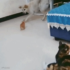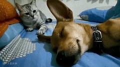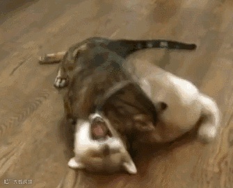 比如这只喵大佬,一口气打趴3只狗砸,气都不带喘的,场面一度混乱...