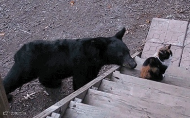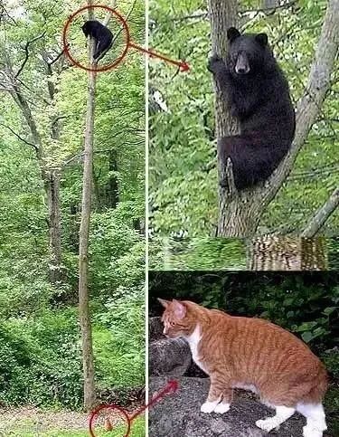 还有的把黑熊逼上高树,愣是等喵皇走了才敢撤...
