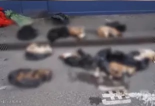 动作是那么的娴熟,仿佛在他们眼中,狗狗不是生命,而仅仅只是一滩烂肉。