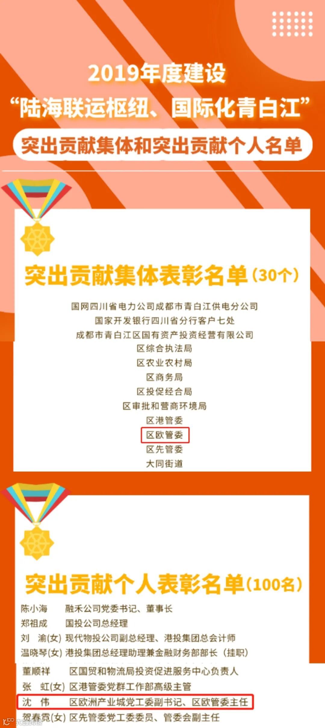 开拓进取,锐意创新。自欧洲产业城诞生以来,就肩负着“一带一路”产业合作历史使命。围绕“陆海联运枢纽、国际化青白江”总体定位,坚定不移畅通道、促贸易、聚产业、优服务,全面推进青白江政治、经济、文化、社会、生态文明建设。欧洲产业城管理委员会勇担当、善作为,荣获2019年度建设“陆海联运枢纽,国际化青白江”突出贡献集体奖,管委会主任沈伟突出贡献个人奖,为推动青白江高质量发展贡献新生力量。