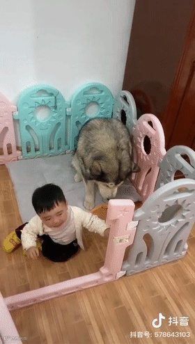 这下终于明白了,为啥都说带娃很辛苦,但狗狗们却任劳任怨帮忙...