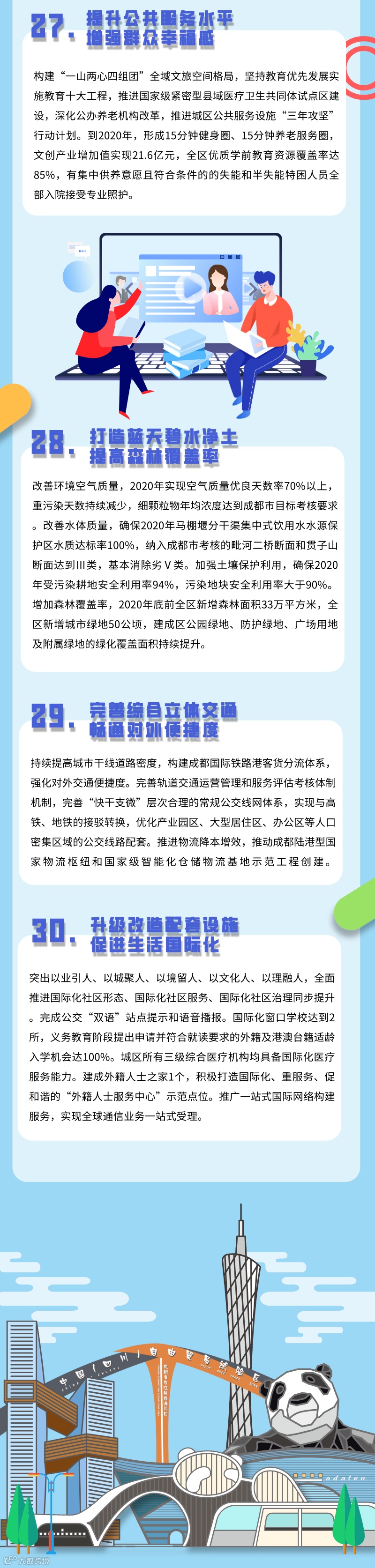 2020年是成都市创新提能年。记者从发布会上了解到,围绕“创新提能”这一主线,青白江区坚持问题导向,聚焦解决企业痛点难点堵点,按照“国际可比、国内领先、青白江特色”的原则,对标世行测评和国家测评表现最优的指标,全面升级2019年“1+10+N”的政策服务体系,研究出台了《成都市青白江区进一步优化提升国际化营商环境工作方案》暨优化营商环境新政30条,提出“企业开办、建筑许可、获得能源、跨境贸易、获得信贷、政务服务、促进民营经济健康发展”等30项重点任务264条改革举措,涵盖企业从初创、经营到注销全生命周期的服务内容。同时,制定了41个配套方案,保障改革任务落地落细落实。着力做优品牌赋能、数字赋能、信用赋能、改革赋能、创新赋能等五大支撑,全面推动国际化营商环境创新提能。