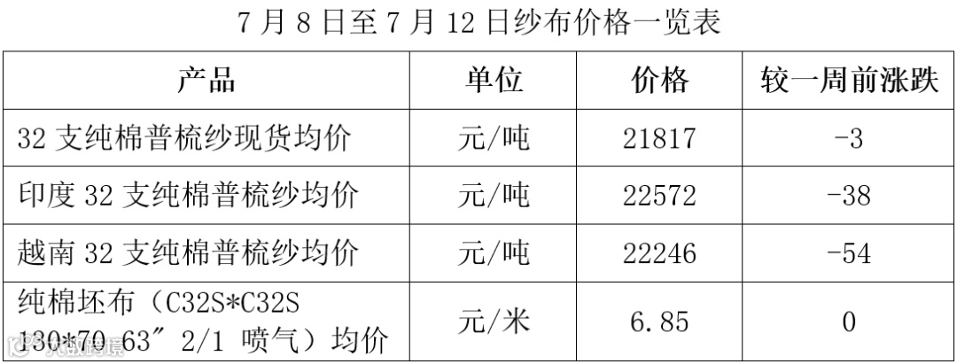 坯布:当周,全棉坯布淡季行情延续,市场整体依旧弱势,织厂开机率低迷,库存坯布累积速度略有放缓,织厂反映近期大订单难寻,以老客户的零星小订单为主。坯布价格持稳,周均价与上周持平。