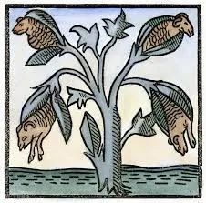 于是阿拉伯商人就忽悠欧洲人,在遥远的印度,有一种神奇的树,树上可以生长出一种“树羊”。树羊挂在树枝上,白天可以悄悄生长,晚上就压弯树枝,低头喝水。