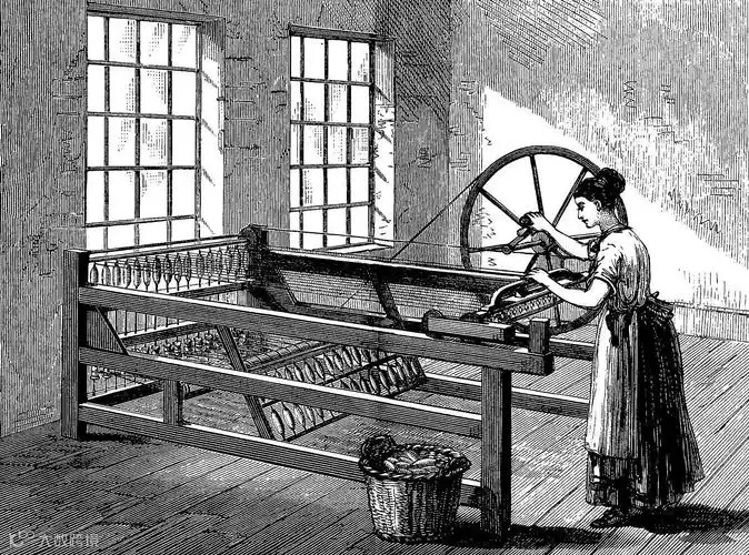 1733年,英国的约翰·凯伊发明了飞梭,大幅提高了织布效率。32年后,珍妮纺纱机的出现,将传统手工纺纱效率提高了8倍!1769年,卷轴纺纱机问世,标志着集中生产式的纺织业,开始取代家庭作坊式的纺织业。