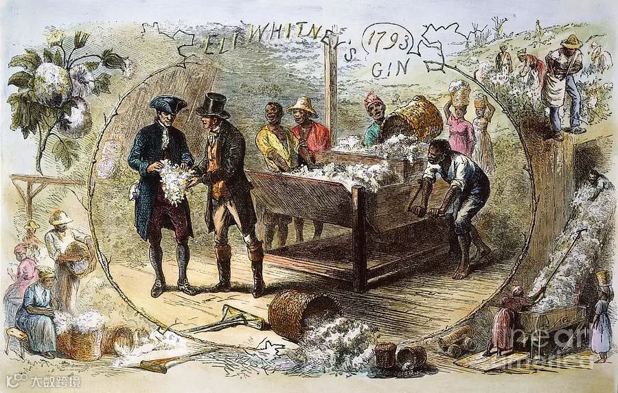 但是,伴随着美国独立战争和英国解锁棉布生产科技,棉纺织业迎来了大发展,再加上美国发明家伊莱·惠特尼在1793年发明出了轧棉机,能快速分开棉花纤维和种子,把棉纺织业最后一块短板业补上了,美国的棉花种植开始大爆发,短短几年时间,棉花种植面积增长了十几倍!