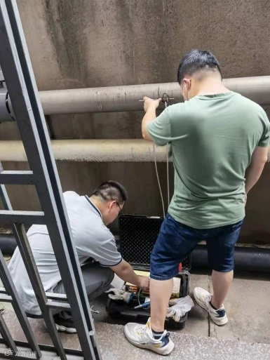 ▲技术服务队在现场查勘企业用能区域