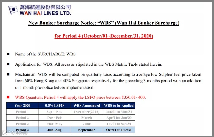 此外,万海航运也依据6月至8月的燃油价格,调整了燃油附加费WBS,适用于10月1日至12月31日。
