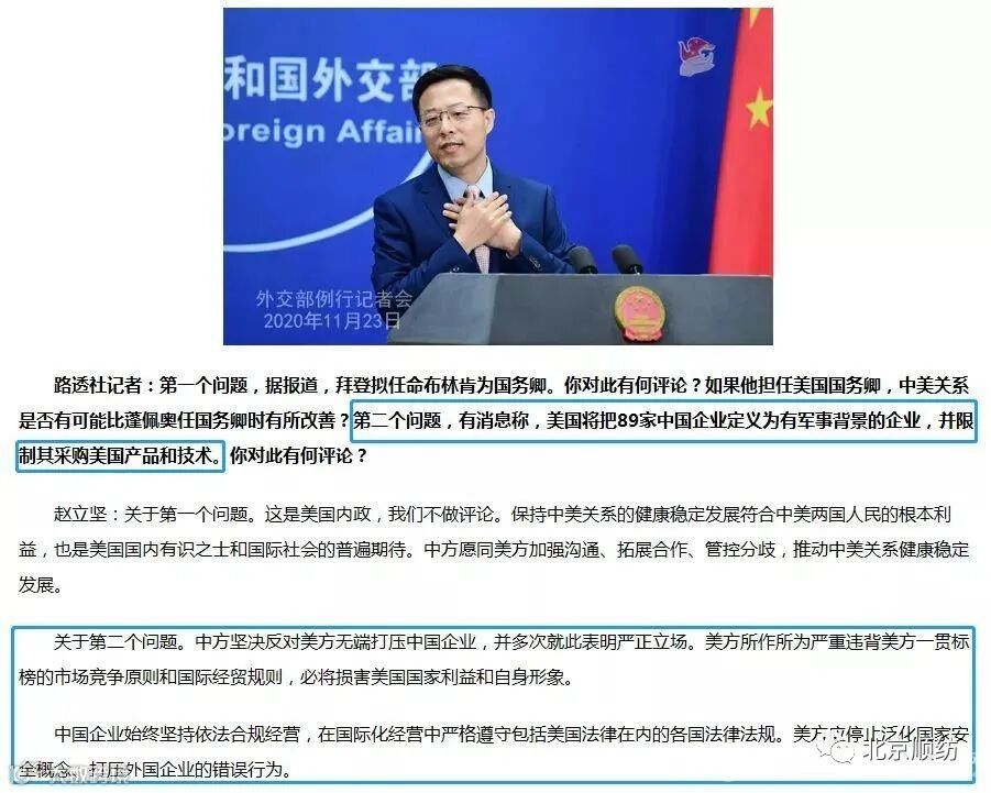 有消息称,美国将把89家中国企业定义为有“军事背景”的企业,并限制其采购美国产品和技术。你对此有何评论?