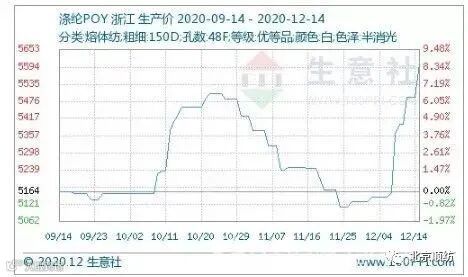 而涤纶长丝企业报价陆续上调,终端买涨气氛带动下,产销回暖,涤纶长丝量价齐升。涤纶长丝商谈重心不断走高,江浙一带主流工厂涤纶POY(150D/48F)报5350-5750元/吨,较月初上调300-500元/吨。