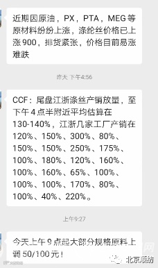 部分原料经销商纷纷表示看好这行情,得益于疫苗、油价等利好消息提振,涤纶长丝企业稳盘意愿较强,而近月产销回暖,企业库存压力小幅下降,在一定程度支撑企业信心,加之多数品种现金流亏损。同时如今的价格还在低位,还有上涨空间,因此后期继续发出涨价通知的几率会更大。