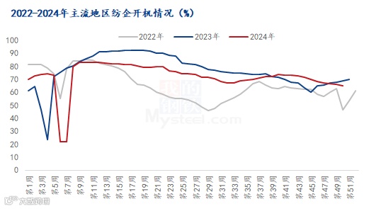 截至12月19日,全国主流地区纺企开机情况