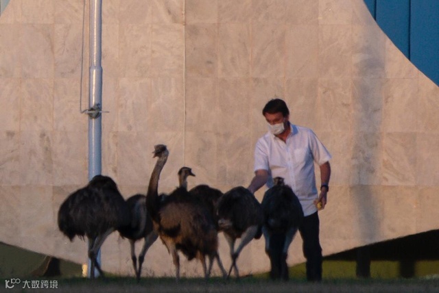 巴西总统博索纳罗在确诊新冠后不甘于在家隔离,于本周又做了一次检测,仍是阳性。但他个人的健康状况看起来还不错,媒体拍到他在隔离期间悠闲地喂鸵鸟,但第二天又有新闻说,他被鸵鸟咬了。网友们普遍关注鸵鸟的健康情况。