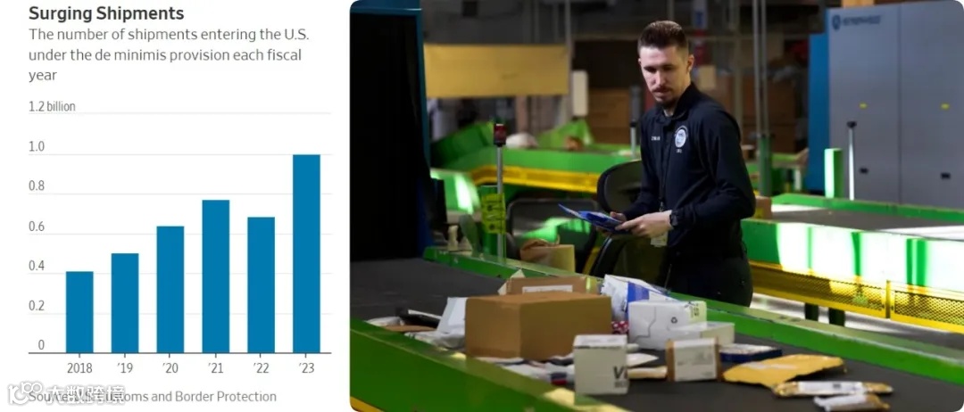 2023年,约有10亿个此类包裹通过这种方式进入美国,其中大部分来自中国。一份报告称,Temu和希音很可能占了小额豁免发货的近三分之一。