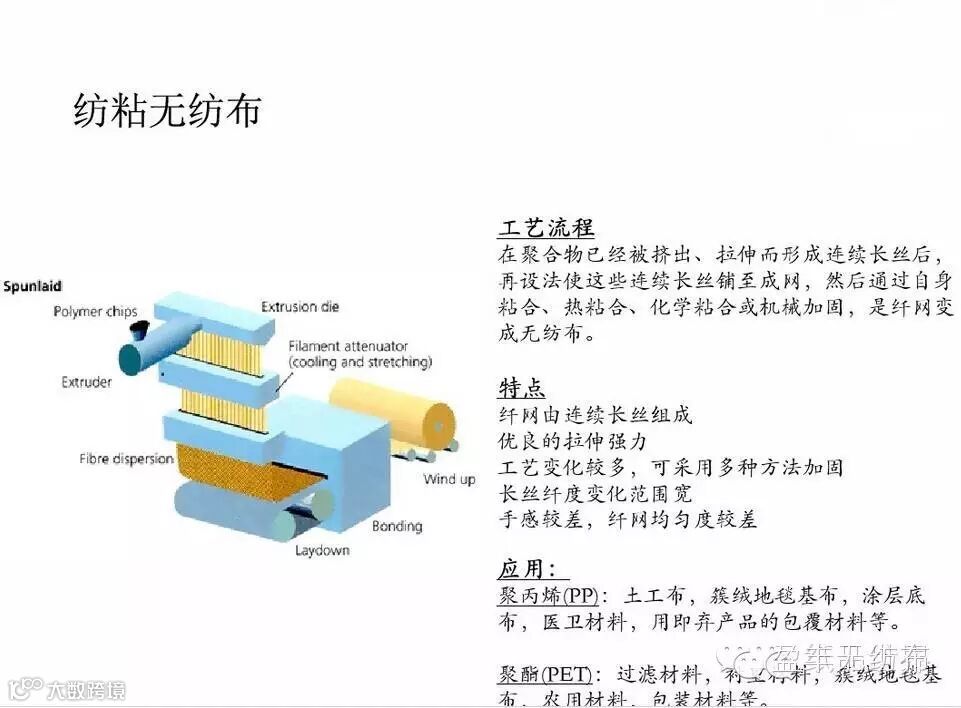 纸尿裤是一次性使用后即可抛弃的产品。以无纺布、卫生纸、绒毛浆、高分子吸水树脂、PE膜、橡皮筋等材料制成。纸尿裤透气性的好坏,看的就是那层无纺布的质量。纸尿裤基本上是无纺布表面层,透气无纺布能提升尿裤内部的透气程度,水蒸气可以流通至尿裤以外,及时排出湿气及热气,有效减少尿疹发生的机会,柔软舒适不刺激皮肤。成人用的卫生巾表面贴近皮肤这层也是无纺布,但纸尿裤所用的无纺布一定要比卫生巾所用的更柔软、更适合宝宝的皮肤。为了能让大家对纸尿裤有更深入的了解,今日小编为大家详细介绍一下纸尿裤的制成材料之一,无纺布。