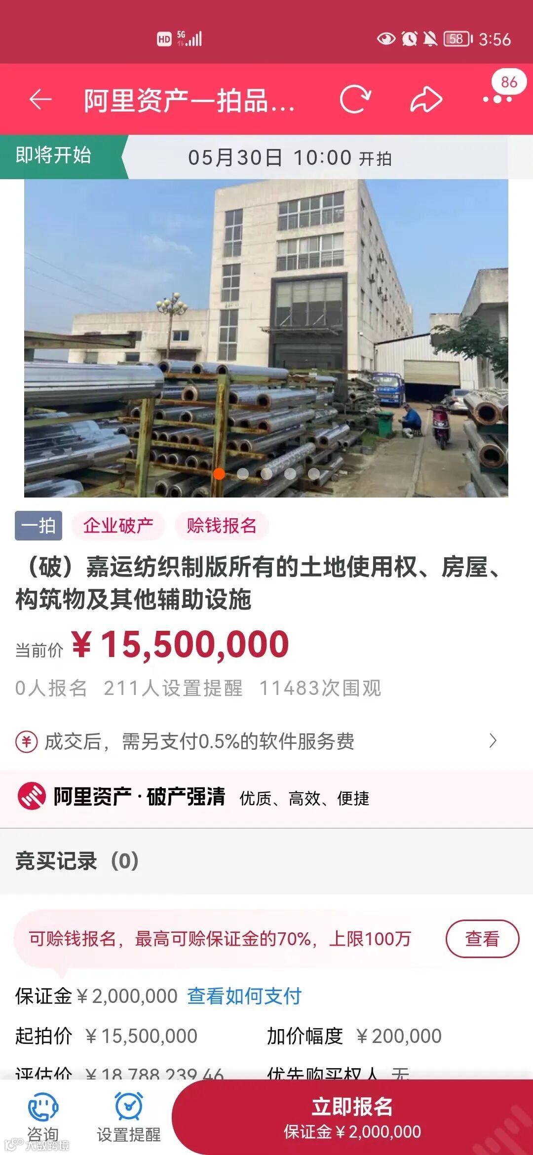 2022年2月23日,法庭发布了裁判文书 (2021)浙0411破12号宣告债务人破产。5月30日,即将在阿里拍卖上拍卖该企业所有的土地使用权、房屋、构筑物及其他辅助设施,标价1550万元。