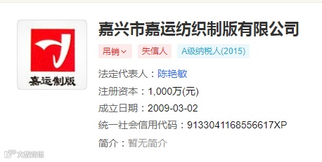 2021年6月,嘉运纺织公司的工商执照被吊销。