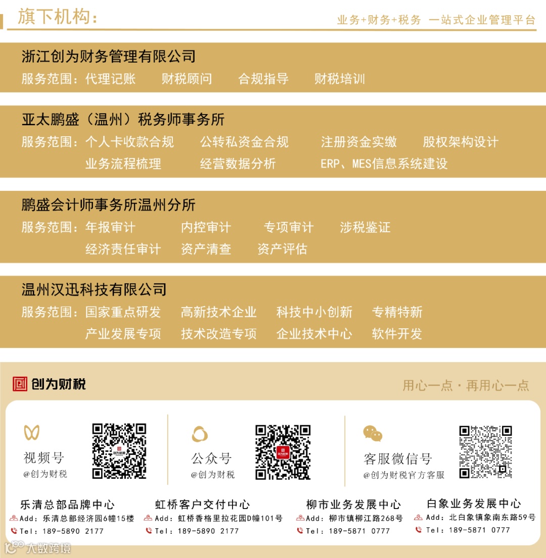 如果您的企业财税方面有问题,记得专业的事交给专业的人来做,创为财税为您的企业安全发展保驾护航!
