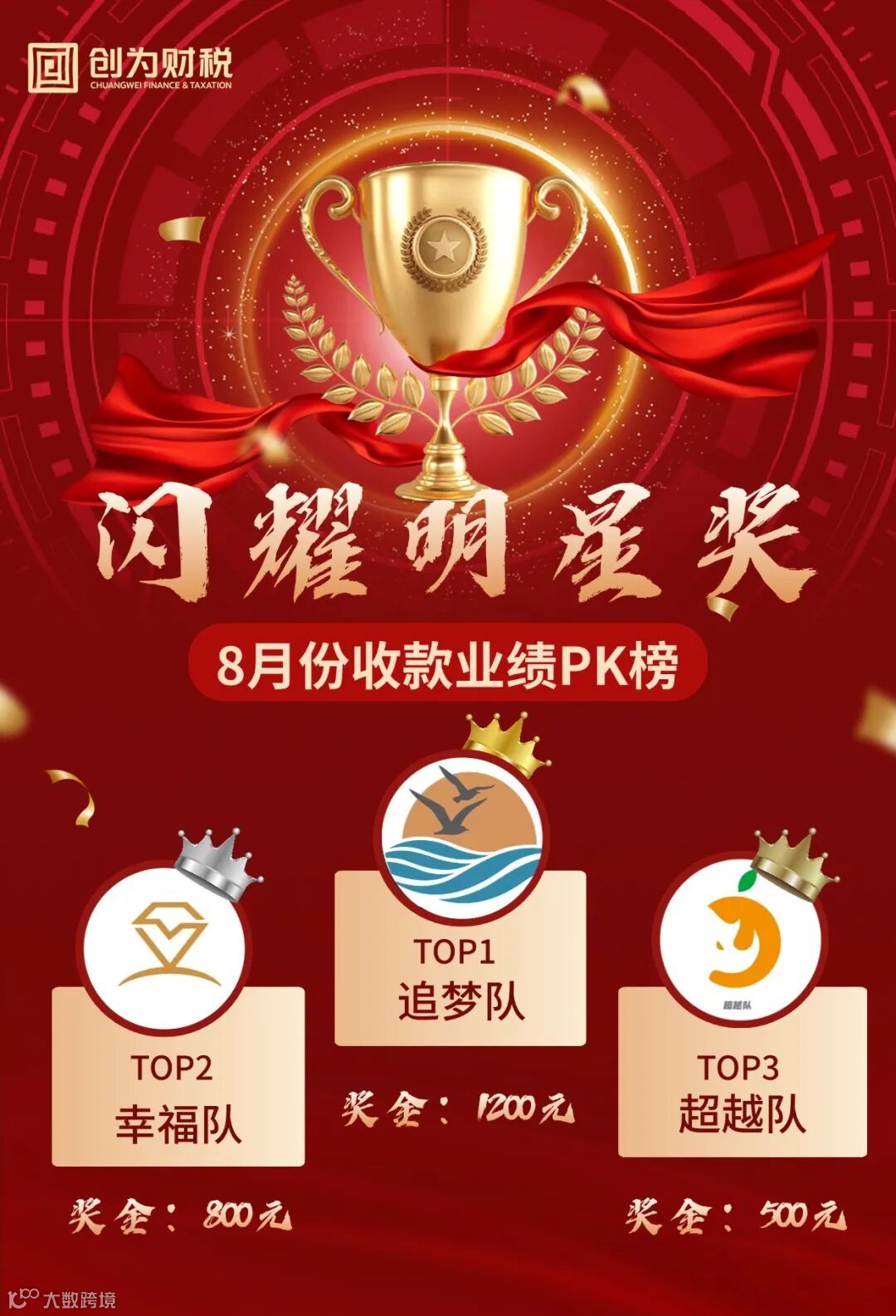 在此,我们向以上获奖团队表示最热烈的祝贺!你们的努力与成就,不仅是个人荣誉的象征,更是创为财税全体同仁学习的榜样与动力。让我们携手并进,以更加饱满的热情、更加坚定的信念,共同开创创为财税更加辉煌的明天!