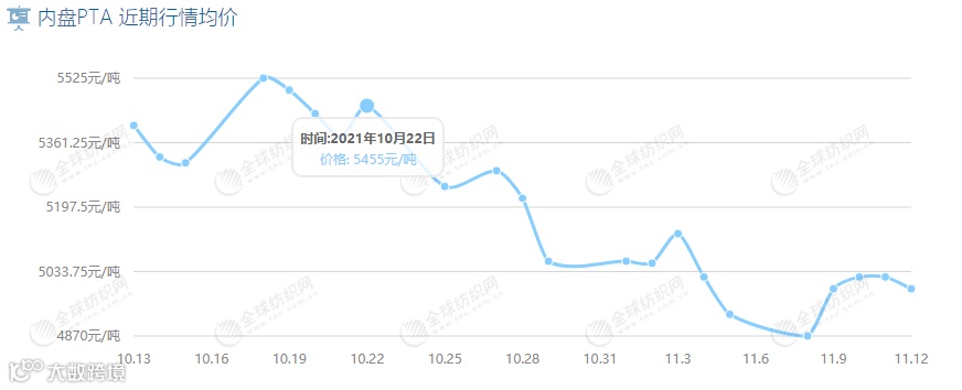 10月13日-11月12日PTA市场价格变动