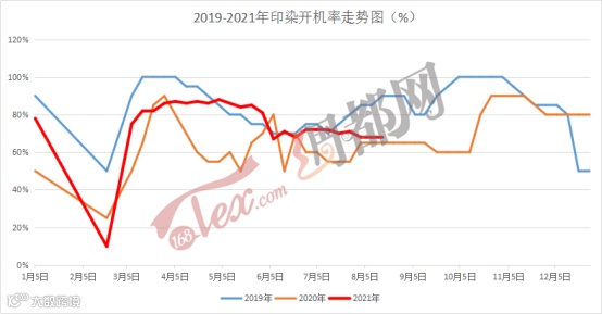 一位印染厂负责人介绍,进入7月之后,市场明显感受到了淡季行情。现在厂里每天的坯布进仓量仅有30-40万米左右,根本无法满足车间里70万米每天的产能。按照这个订单量,染厂有一半的机器设备处于闲置状态。8月之后,坯布进仓虽然小幅回升至40-50万米左右,但不能持续 ,并且热销产品匮乏。