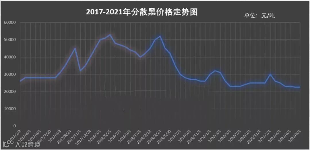 要说染料价格何时最低,毫无悬念一定是去年疫情期间。以活性染料黑WNN为例,自去年三月开始价格持续下降,从均价2.2万-2.3万元/吨跌至了7月份均价1.8万-1.85万元/吨,跌幅为18.2%-19.6%。