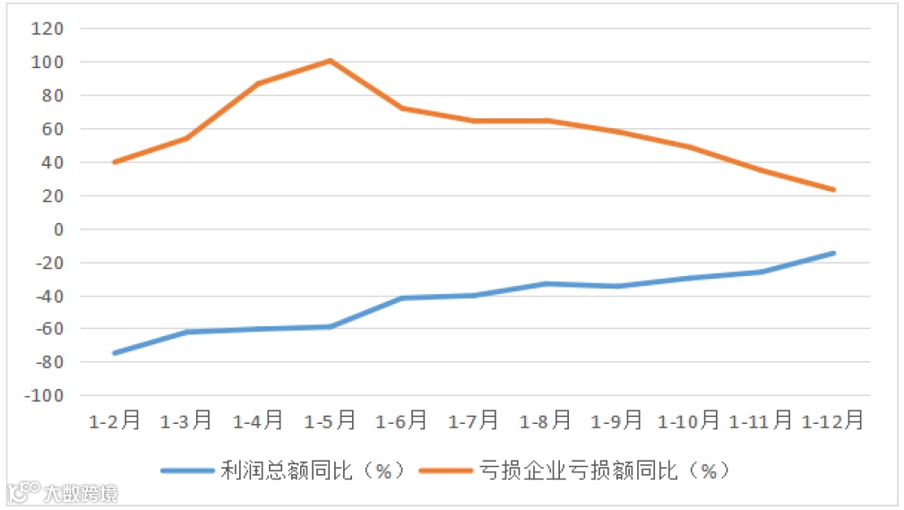 图8 2020年化纤行业利润总额和亏损企业亏损额同比变化