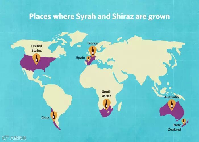 除了澳大利亚以外,南非、智利等国家也大多将该品种写作Shiraz,不仅象征一种新世界风格,也是出于市场营销的考虑。