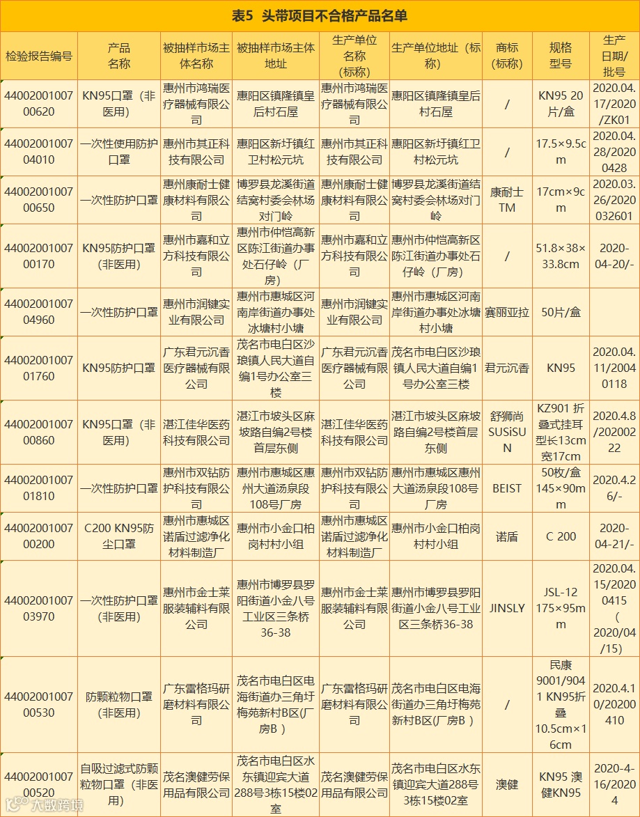 5.河南优迈思健康科技有限公司生产的1批次KN95防护口罩,过滤效率实测最低值30.1%,标准要求≥95%。