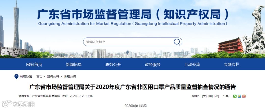 根据《中华人民共和国产品质量法》《广东省产品质量监督条例》等相关规定,广东省市场监督管理局开展了广东省非医用口罩产品质量监督抽查。本次共对广东省579家企业生产的653款非医用口罩产品质量开展了监督抽查,涉及全省21个地市。