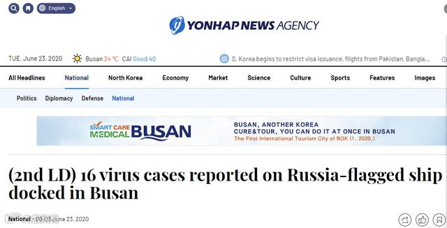 据韩国釜山市政府、韩国国立釜山检疫所和釜山航运工会6月22日的联合消息称,6月19日上午停泊在釜山市甘川港的一艘冷藏运输船(3933吨)上21名船员中有16人于6月22日下午确诊感染新冠病毒。