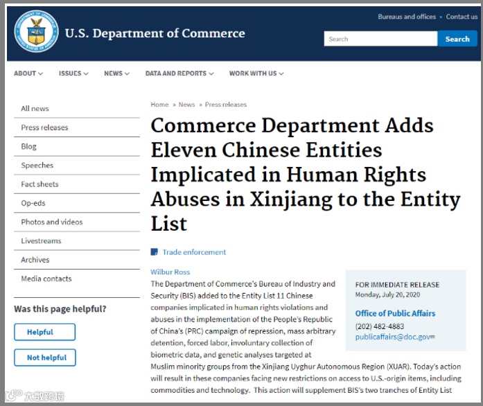 此前在2019年10月和2020年5月发布的两份声明,已将60多家公司和实体列入“实体清单”。