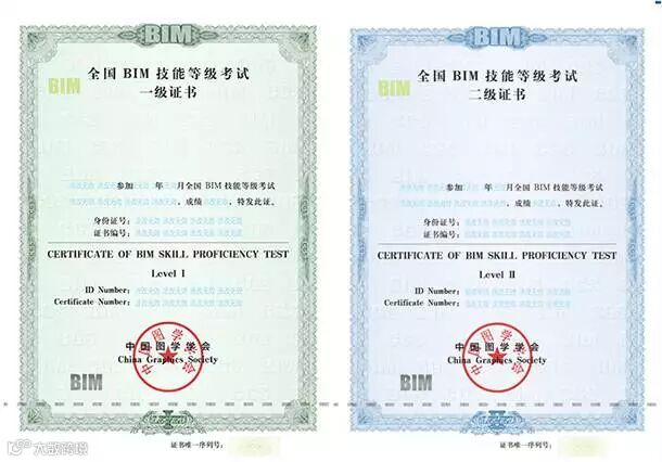 全国BIM技能等级考试证书样本