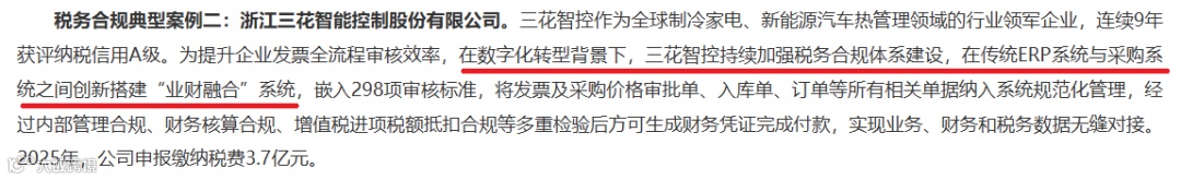 三花智控在传统ERP系统上创新搭建“业财融合”系统,嵌入298项审核标准;华峰化学自主研发SRM系统,利用OCR识别自动检验发票。