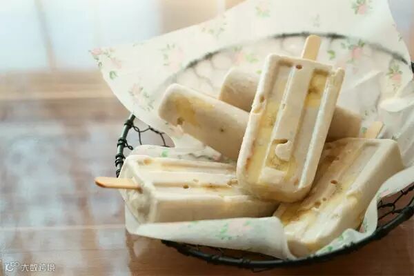 4. 香蕉1根切片,贴在雪糕模内壁上;