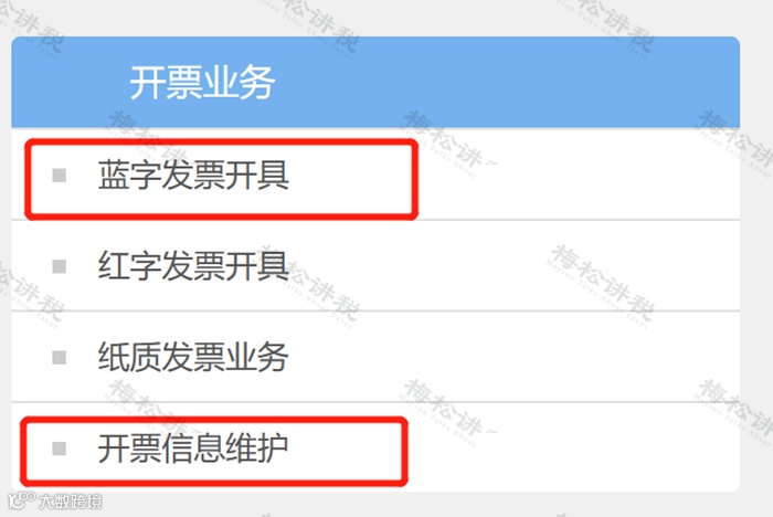 2、选择【蓝字发票开具】。如下图: